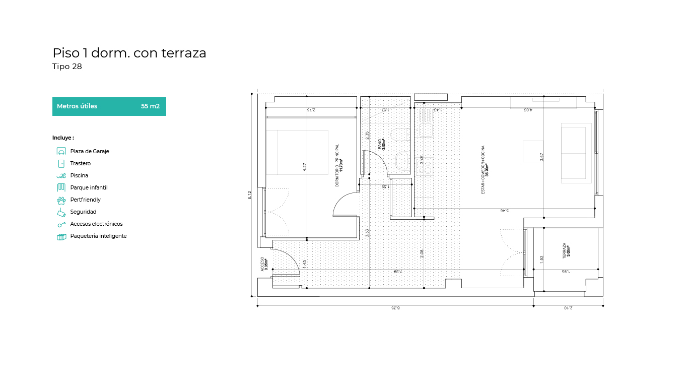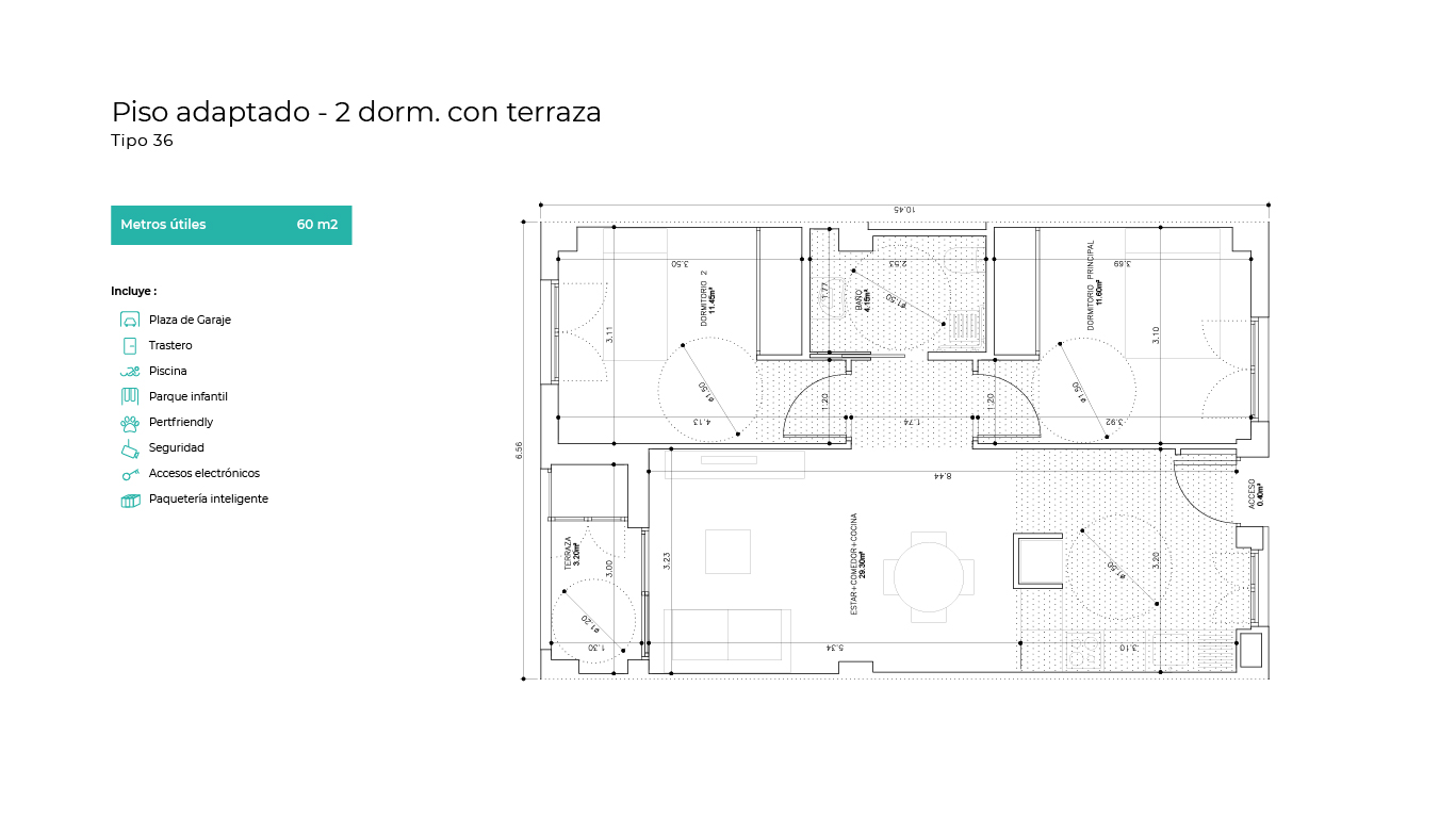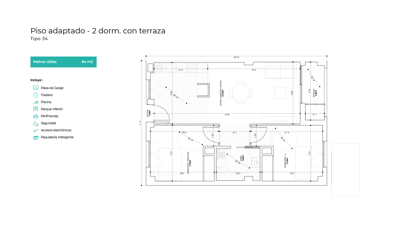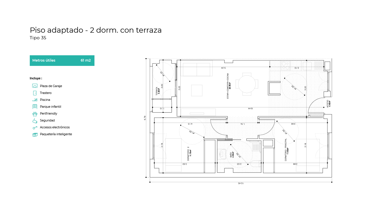La promoción cuenta con varias viviendas de carácter "adaptadas" destinadas a personas con discapacidad. No dudes en consultarnos por ellas si lo necesitas.
