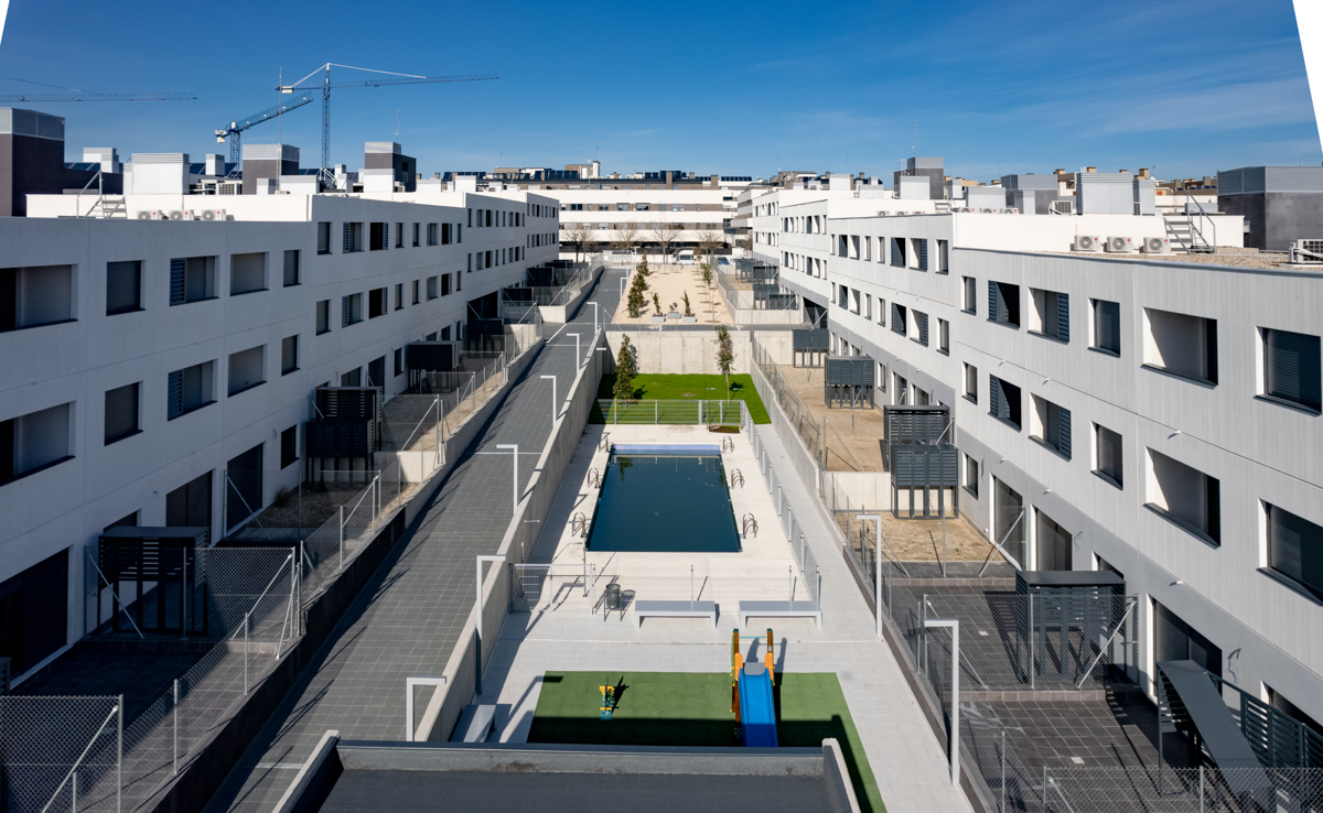 Alkira Arroyomolinos es una comunidad de 206 viviendas de carácter Protección Pública, por el decreto 74/2009, en régimen de alquiler. Entre sus cualidades el edificio cuenta con 315 plazas de aparcamiento, 206 trasteros (1 por vivienda), además de varias zonas comunes como parque infantil y piscina, para que los más pequeños puedan disfrutar de la comunidad tanto como vosotros.