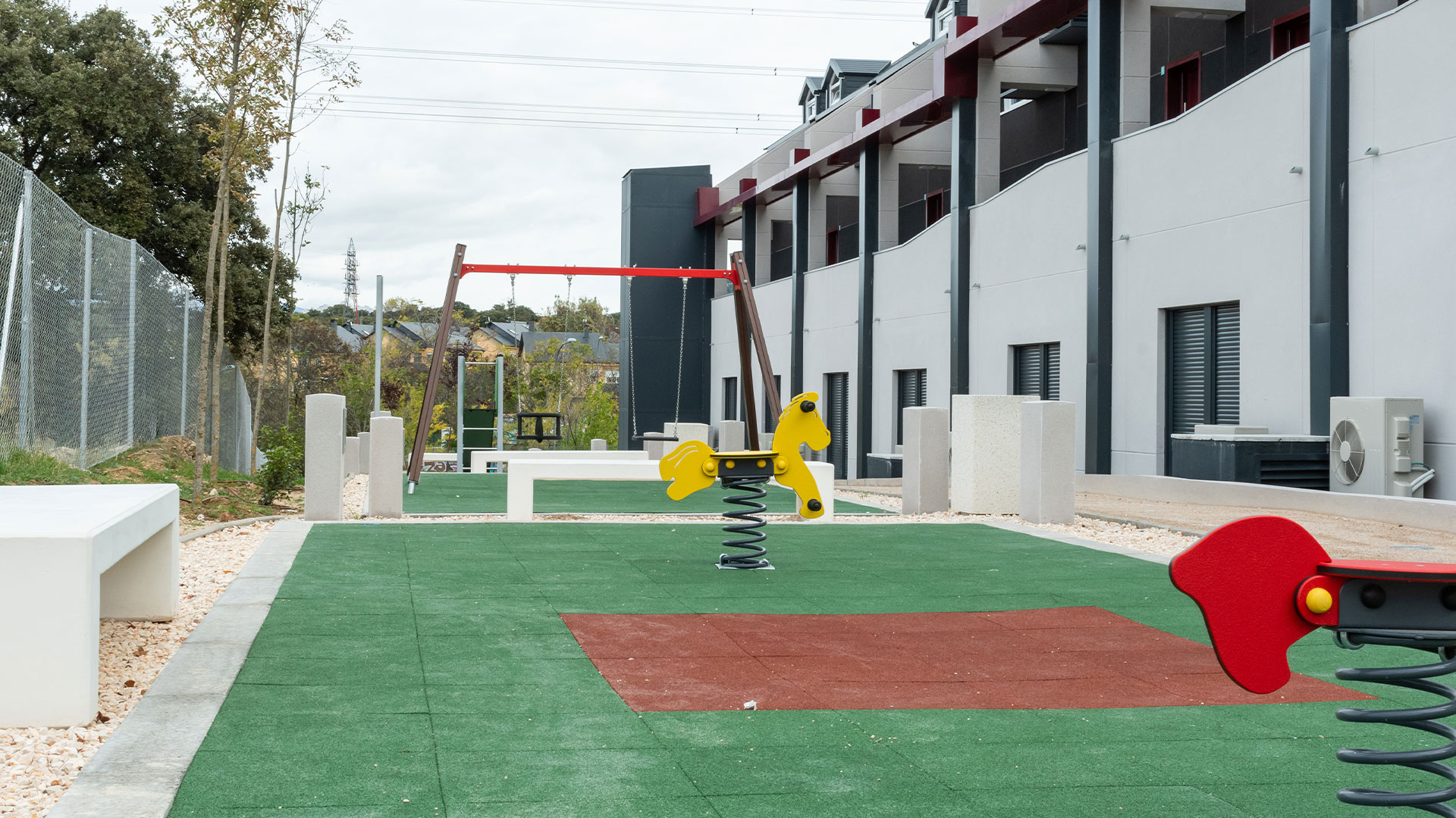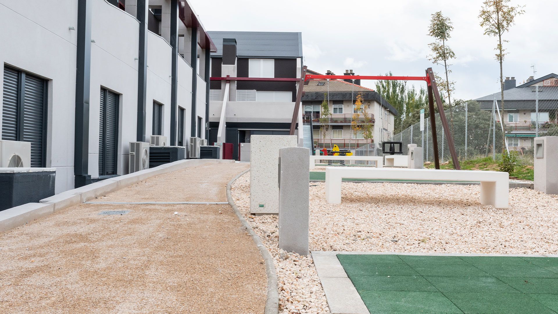 En Alkira Villalba podrás disfrutar de tu piso bajo con patio o duplex con terraza, además de todas las zonas comunes: parque infantil, piscina comunitaria y servicios añadidos que harán tu día más fácil. Además, gracias a los sistemas de eficiencia energética, la sostenibilidad y eficiencia en la construcción y al alquiler asequible podrás ahorrar más cada mes.