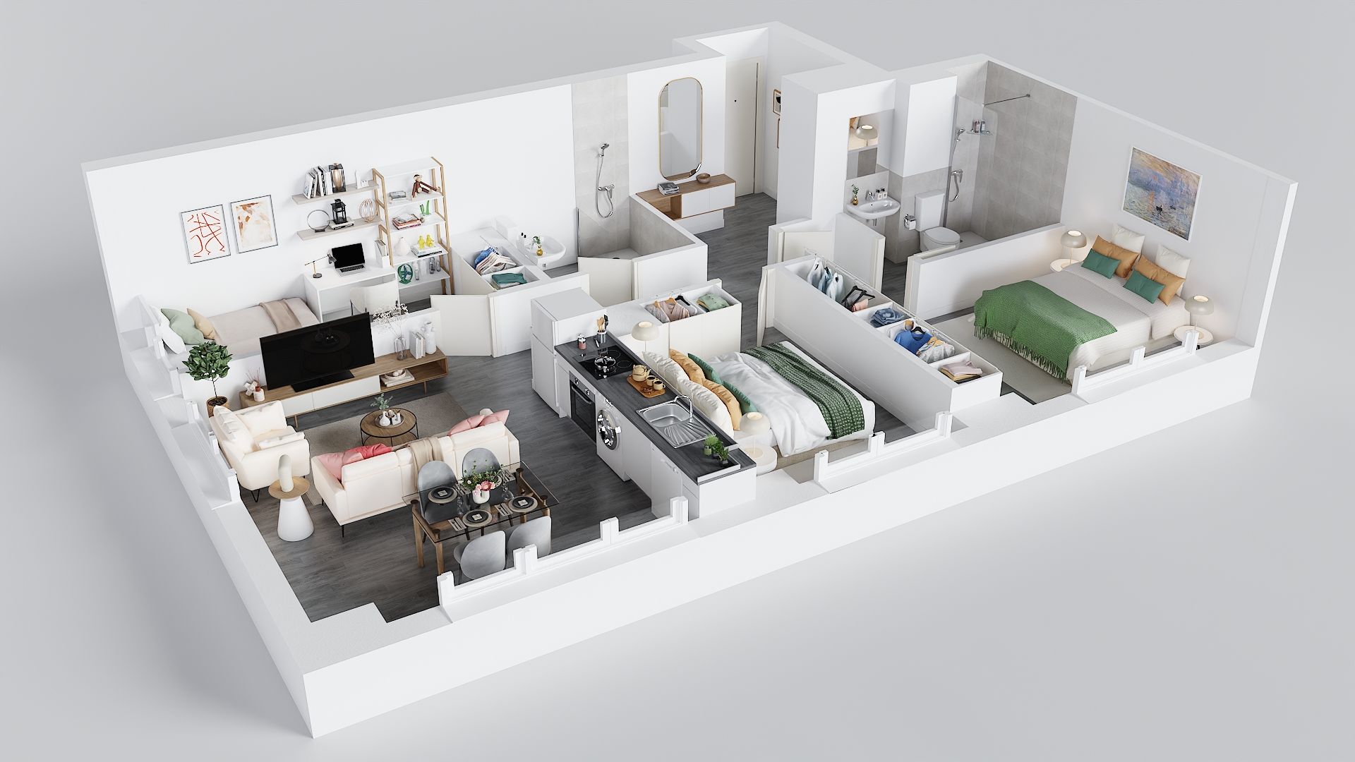 La promoción cuenta con viviendas de 1, 2 y 3 dormitorios sin amueblar con la cocina equipada con horno, vitrocerámica y campana extractora.